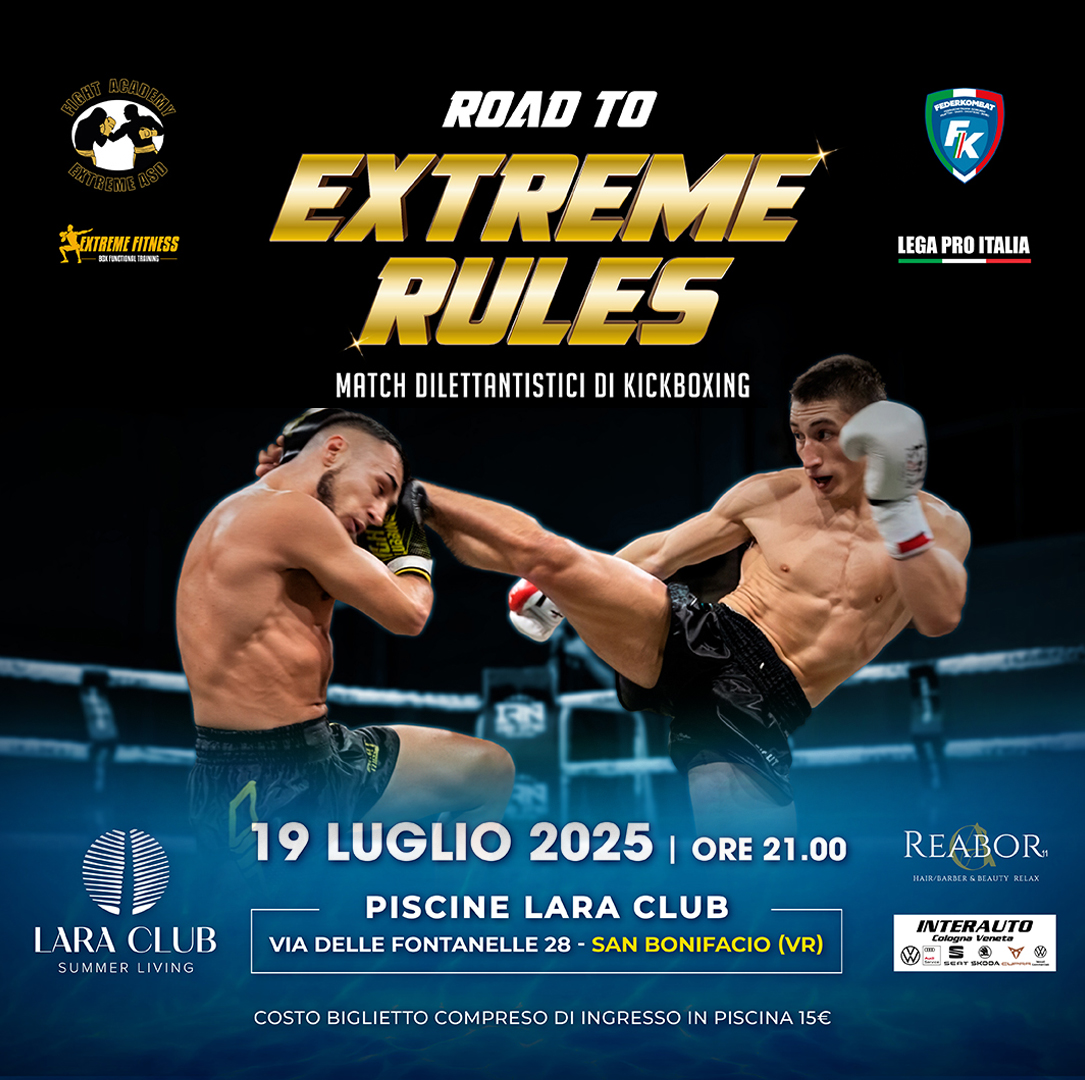 Il 19 luglio 2025 segnerà una svolta epocale per EXTREME RULES: per la prima volta nella storia, l’evento sarà ospitato da una location straordinaria, il LARA CLUB  di San Bonifacio, un’arena capace di esaltare ogni combattimento e trasformare la serata in uno spettacolo senza precedenti!